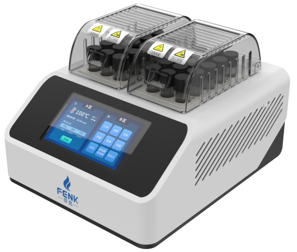 1. 獨立雙溫控:儀器設有兩個溫區,每個溫區擁有15個消解孔位,并且因為每個溫度 區是通過獨立控制面板進行溫度控制,兩個溫度區工作時互不影響,所以可以同時對兩種不同溫度的水樣同時進行消解。